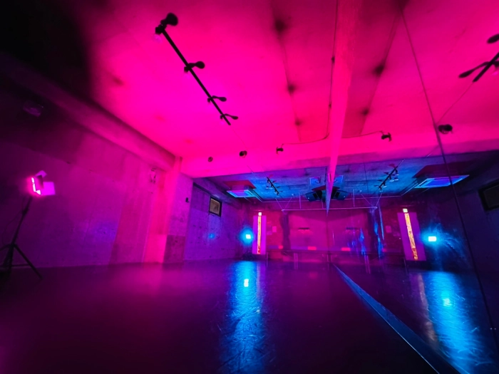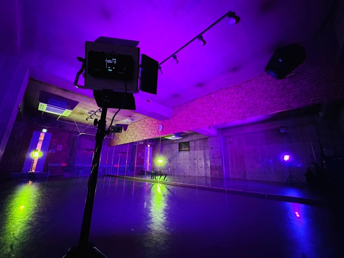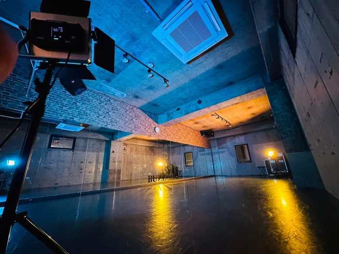 【スタンド式LED照明設置】BUZZ赤坂で最大のスタジオ。床はリノリウムを使用。10人以上で利用可能!