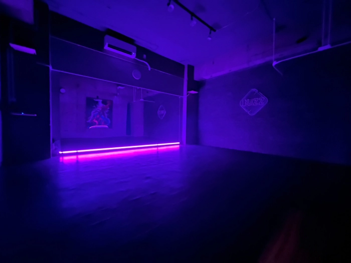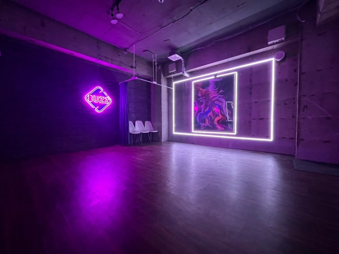 もう片方の壁には「BUZZ」LEDネオンサインを設置。