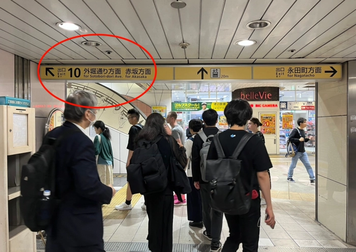 出口 赤坂方面へ向かう
