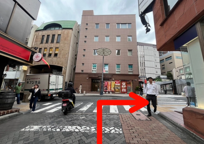カラオケ「BIG ECHO」が見えたら右に曲がる