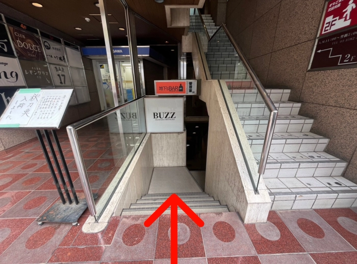 入口は階段から地下1階へ