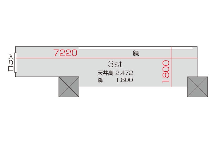 広さ 11.0㎡ 天井高 2.47m 鏡 1.8m