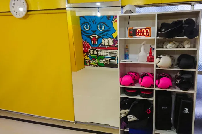 スタジオの入口前で靴を脱いでいただき、電気を点けてお使いください。受付での手続きなどは一切ございません。
