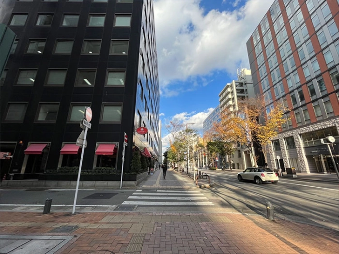 地上出口に出たら左に曲がり、横断歩道も渡り進む。
