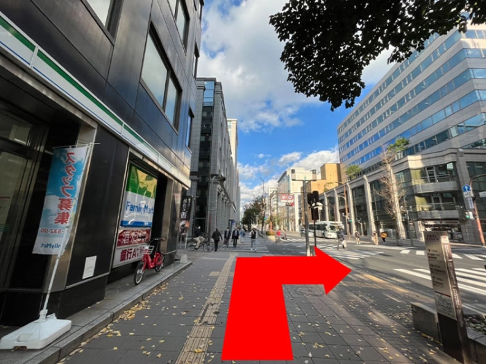 少し進んだ先にあるファミリーマート前の横断歩道を渡る。
