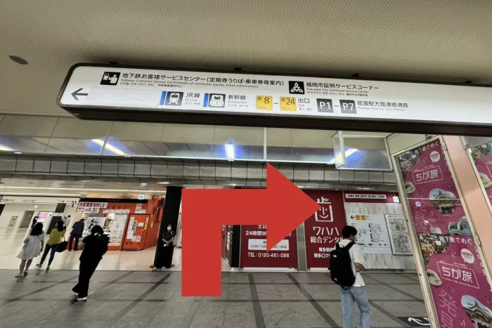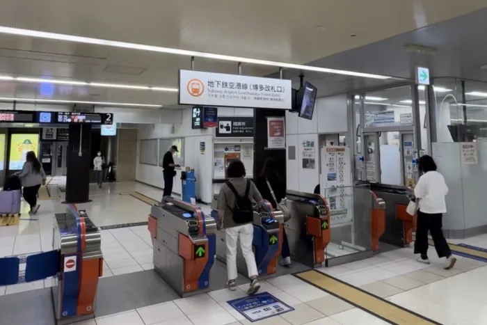 地下鉄空港線博多口改札を進む