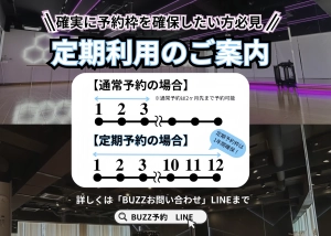 ご予約ありがとうございました。 ========= スタジオ内Wi-Fi ID:BUZZ_fukuokahonten PASS:buzz88888 ========= ——————————————— ✨NEW OPEN✨  \\ BUZZ熊本 // 〜12/23 OPEN〜 ◆熊本市中央区上通町8−20 1階 ◆全5スタジオ :新デザイン導入のスタイリッシュな店舗 :1〜20人まで使える様々な部屋をご用意 ▶ ご予約はこちら https://buzz-st.com/kumamoto ———————————————— 【重要】 22:00-7:30はビル正面入り口が施錠されます。 ⚠エレベーターは一番左のみ使用可能です。 ※建物入り口※ [事前準備] BUZZ公式LINEを登録する。 ▼BUZZ公式LINE https://lin.ee/qHq8BQ7 [当日22:00~7:30] 1)右手の小道から裏口に回る。 2)BUZZ公式LINEのリッチメニューから「解錠」をタップ 3)「BUZZ福岡本店」→「BUZZ福岡本店裏口テンキー」の順にタップ 4)裏口のテンキーに表示された番号を入力して解錠 ※各部屋内※ 4)「BUZZ福岡本店」→「ご利用のお部屋」を選択後、「解錠する」をタップして解錠ください。 (順次設置となるため、まだ解錠が必要ない店舗もございます。その場合は解錠せずにご入店ください。未設定の店舗はエラー表記となります。) ※スタジオご利用に関するお願い※ ・ゴミの持ち帰り ・退室前の簡単な清掃 ・音量を上げすぎない ・スタジオ周辺でたむろしない、騒がない これらを守って皆様が気持ちよくご利用頂けるようご協力よろしくお願いいたします。 ホームページに記載の利用規約をご確認くださいませ。 【注意】 ・土足禁止 室内履きをご持参ください。 ・置き引きにご注意ください。 スタジオを離れる際は貴重品を肌身離さずお持ちください。 お客様のご理解とご協力をお願いいたします。 ※スタジオ内での盗難等については責任を負いかねます。 【定期利用】 予約枠を優先して確保出来る”定期利用”のご案内✨️ ご希望の「店舗」「スタジオ」「曜日」「時間」「開始予定日」がお決まりの方は下記リンクよりお問い合わせください! その他定期利用に関してのご相談もお気軽にご連絡ください。 https://line.me/R/ti/p/@699zjzrr 【2000円クーポン当たる!】 アンケート回答で毎月20名様に 割引クーポン2000円分当たる? ▪️アンケートはこちら https://docs.google.com/forms/d/1gQDq-pdTlAyZpIXjJK9uKnXTiGdkVTgGg0Mkrt0Ga_w/edit?edit_requested=true