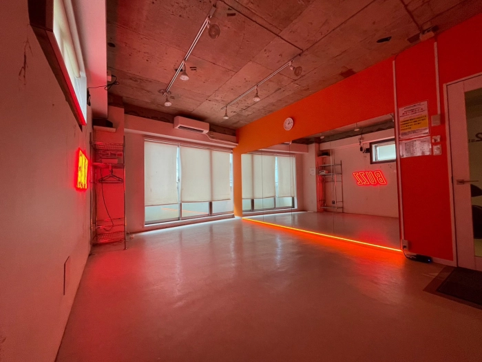 調光利用 男女別更衣室 丸椅子 ヨガマットレンタル LED照明 スマホスタンド ネオンサイン 自動販売機 個室エアコン完備