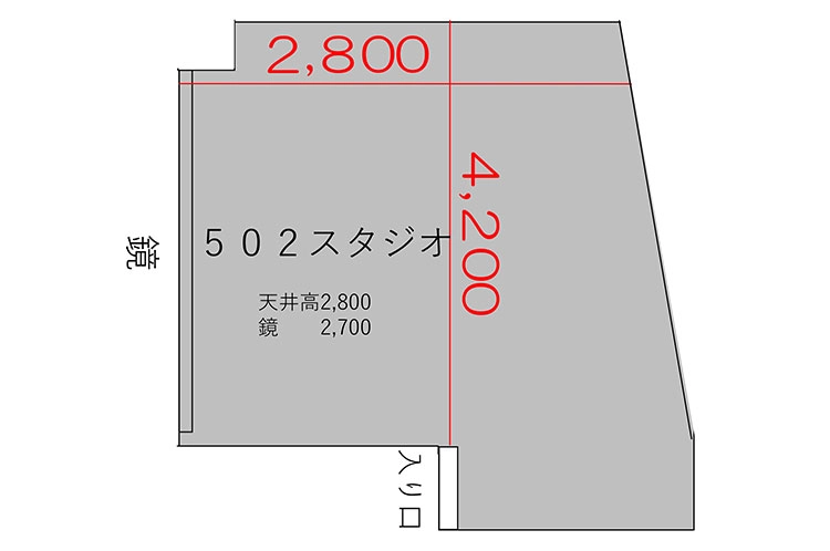 スタジオの入口前で靴を脱いでいただき、電気を点けてお使いください。受付での手続きなどは一切ございません。