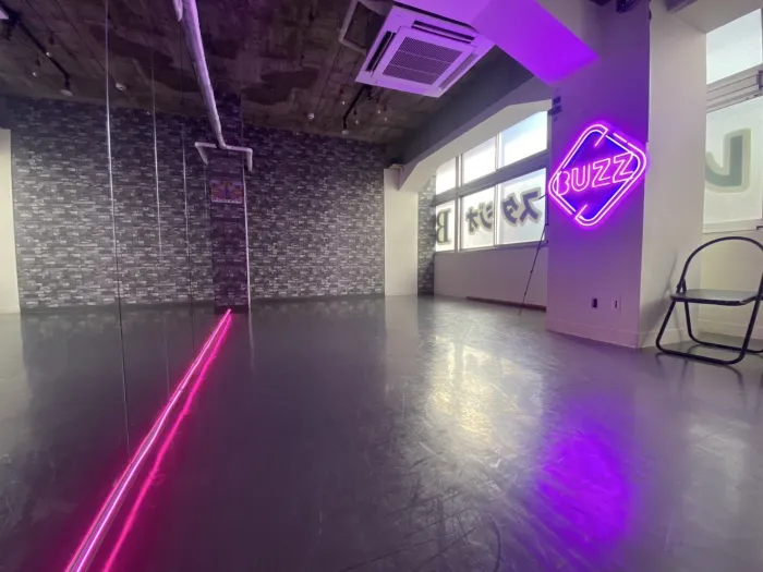 【LEDネオンサイン導入】池袋本店最大のスタジオ!鏡面約9mで広々レッスン等でも大好評のスタジオです。