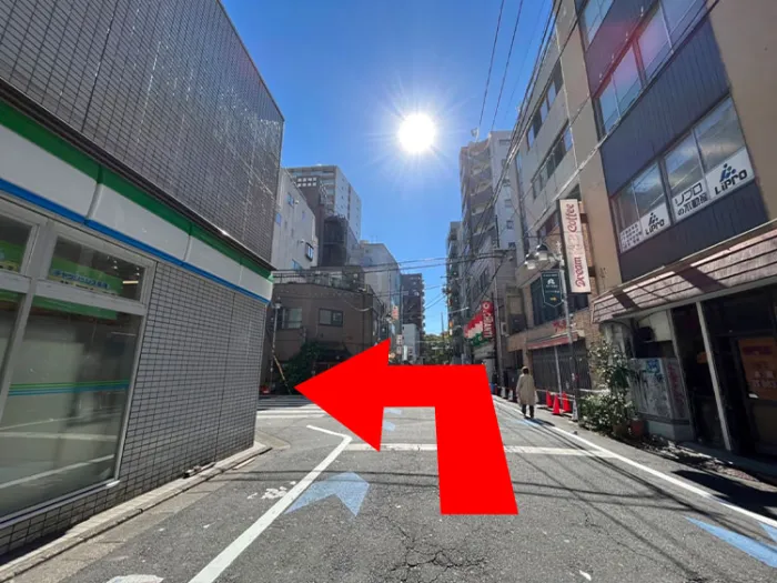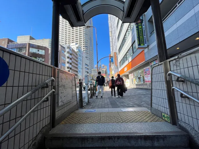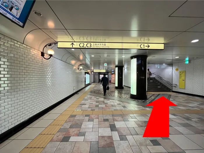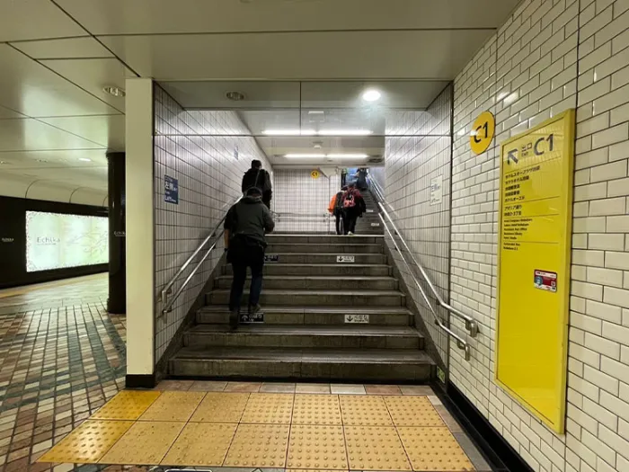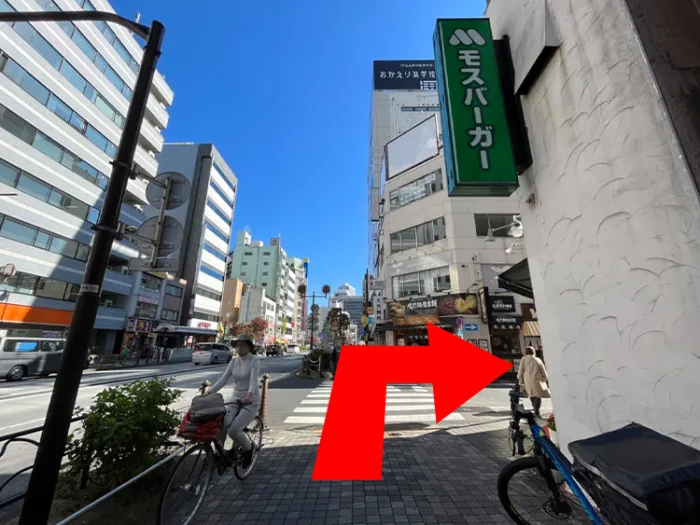 C1出口を出たらそのまま真っ直ぐ進み、一つ目の横断歩道を左に渡る。
