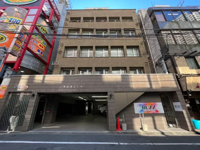少し進むと右手に見えるライオンビルの地下1階がBUZZ池袋西口PARKになります。