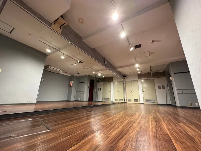 鏡面5.4mで、3〜5名ほどの少人数レッスンに最適です。