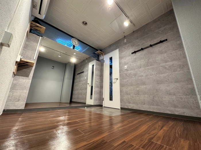 スタジオの入口前で靴を脱いでいただき、電気を点けてお使いください。受付での手続きなどは一切ございません。