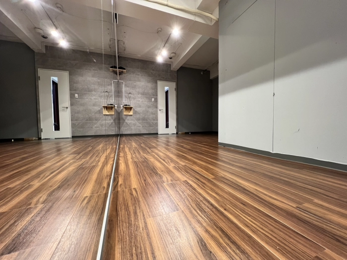 鏡面5.4mで、3〜5名ほどの少人数レッスンに最適です。