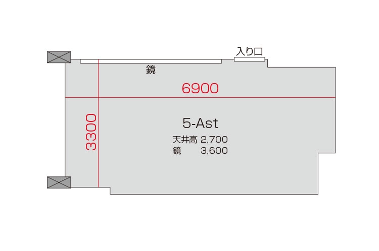 広さ 22.0㎡ 天井高 2.7m 鏡 3.6m