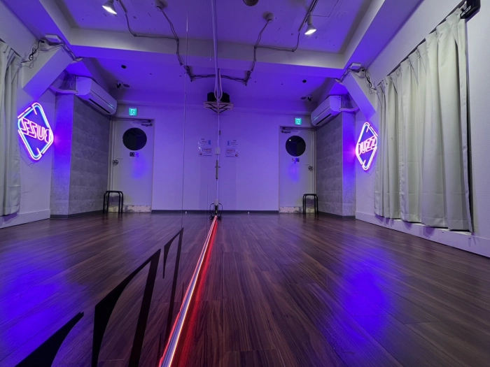 スタジオの入口前で靴を脱いでいただき、電気を点けてお使いください。受付での手続きなどは一切ございません。