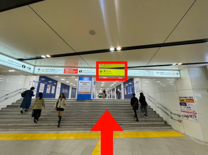 西武の階段登り、出口38番へ向かう