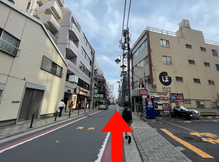 地上へ出たら、しばらくまっすぐ右に進む
