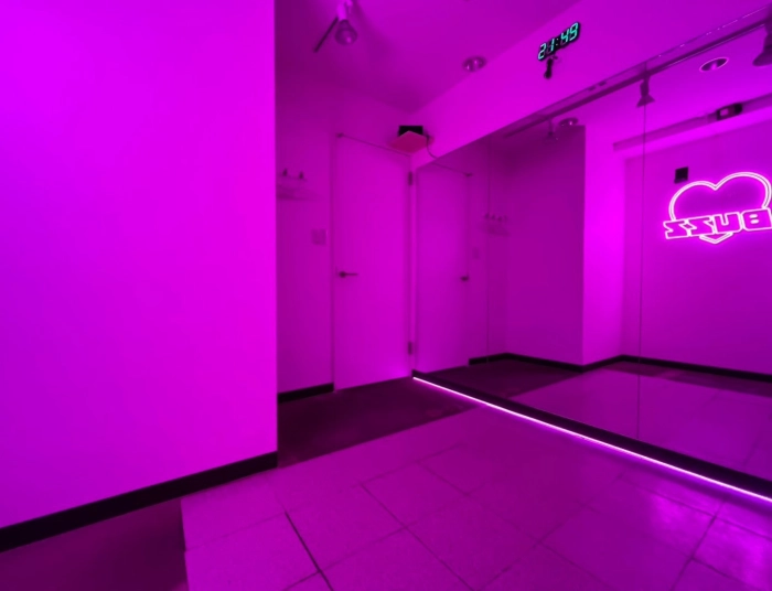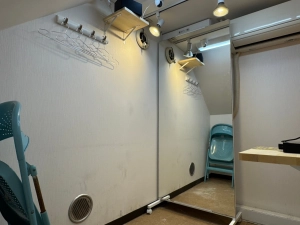 更衣室完備 調光利用 ◆ライトニング/ステレオミニプラグ対応 丸椅子 スマホスタンド 個室エアコン完備