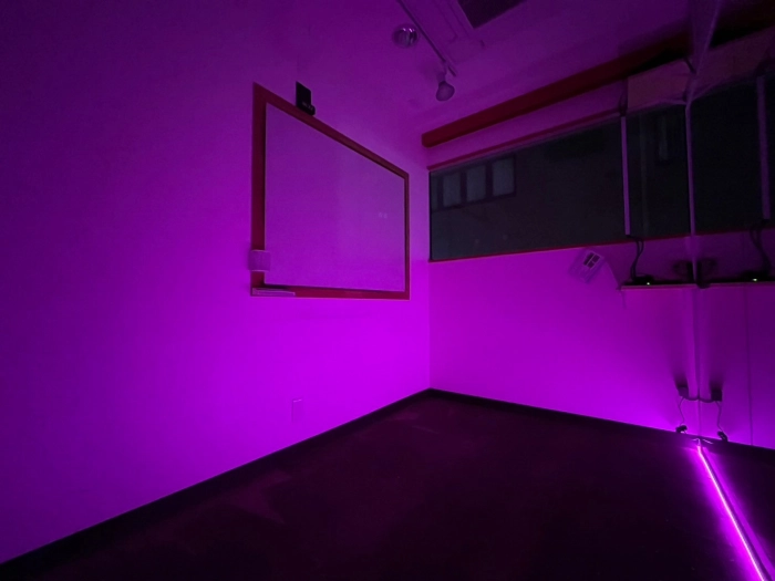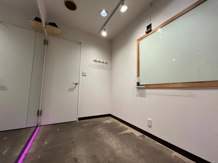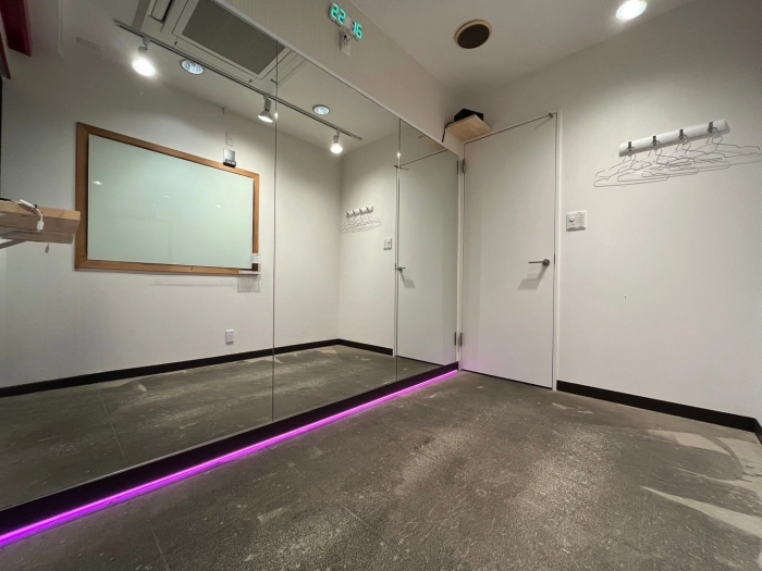 スタジオの入口前で靴を脱いでいただき、電気を点けてお使いください。受付での手続きなどは一切ございません。