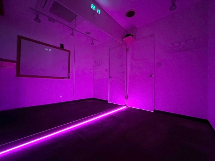 更衣室完備 調光利用 ◆ライトニング/ステレオミニプラグ対応 丸椅子 スマホスタンド 個室エアコン完備