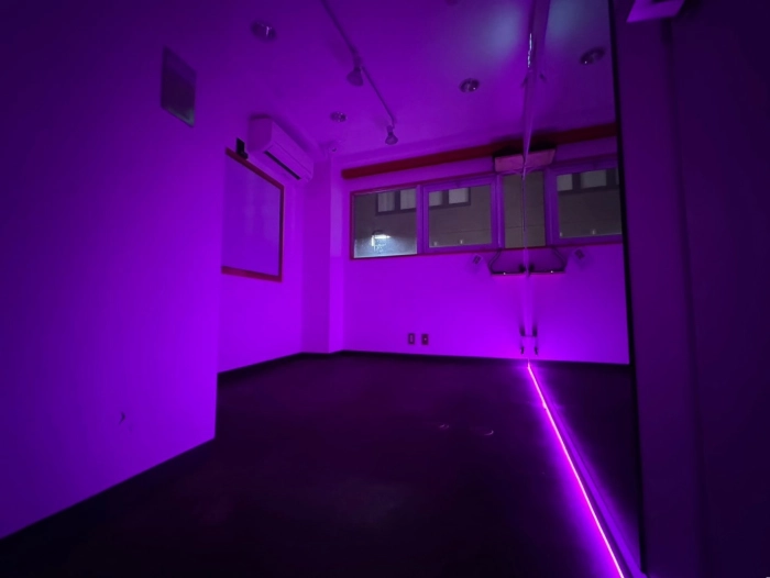 スタジオの入口前で靴を脱いでいただき、電気を点けてお使いください。受付での手続きなどは一切ございません。