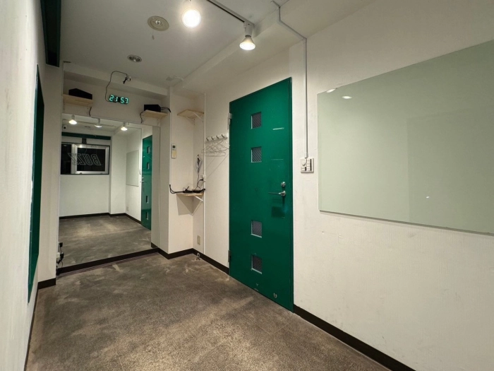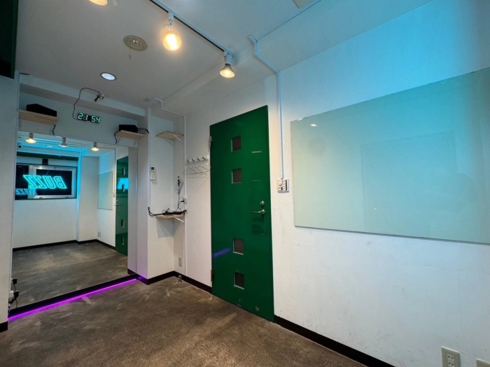 スタジオの入口前で靴を脱いでいただき、電気を点けてお使いください。受付での手続きなどは一切ございません。