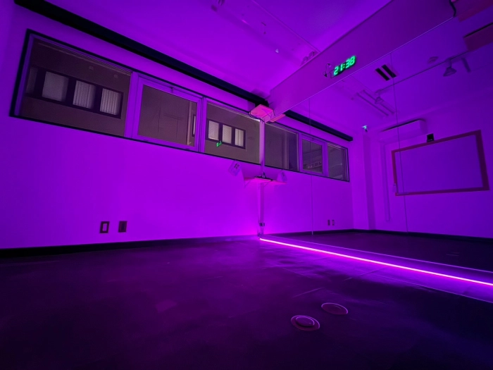 スタジオの入口前で靴を脱いでいただき、電気を点けてお使いください。受付での手続きなどは一切ございません。