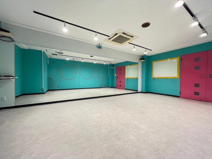 【海外の子供部屋風内装デザイン】 CUTEなカラー壁×カラフルLED あらたな「海外の子供部屋風POP」なデザインのスタジオが誕生! コンセプトに合わせたこだわりのダンス動画が撮影してみませんか? 明るい状態・LEDのみの状態、其々また違った雰囲気で楽しむことができます♪ 10~15名での利用可 レッスンにおすすめの中型スタジオで💚