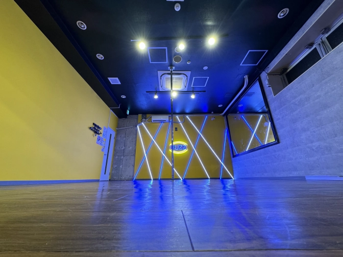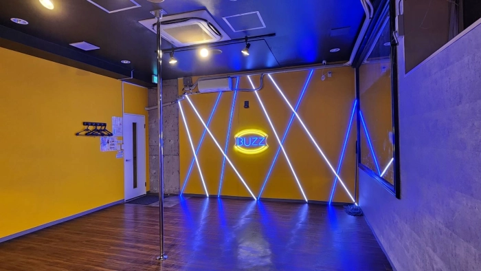 更衣室完備 ◆ライトニング/ステレオミニプラグ対応 ポールダンス可 フローリング 丸椅子 LED照明 スマホスタンド ネオンサイン 自動販売機 個室エアコン完備