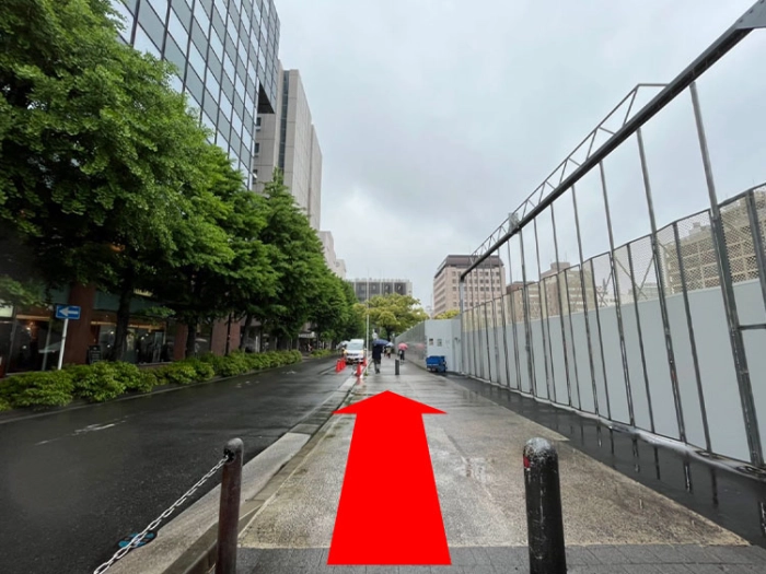 真っ直ぐ進み、大道路に突き当たったところで右に曲がる