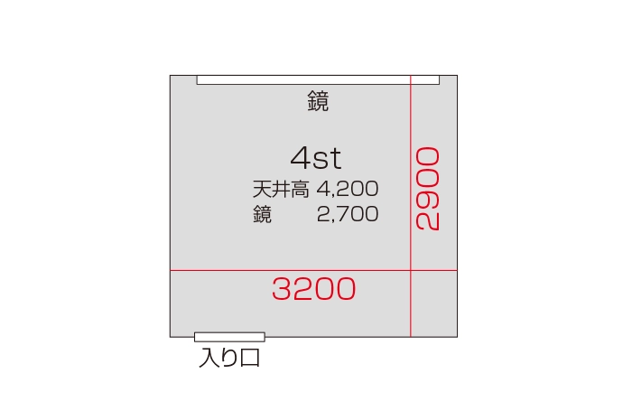 広さ 10.2㎡ 天井高 4.2m 鏡 2.7m