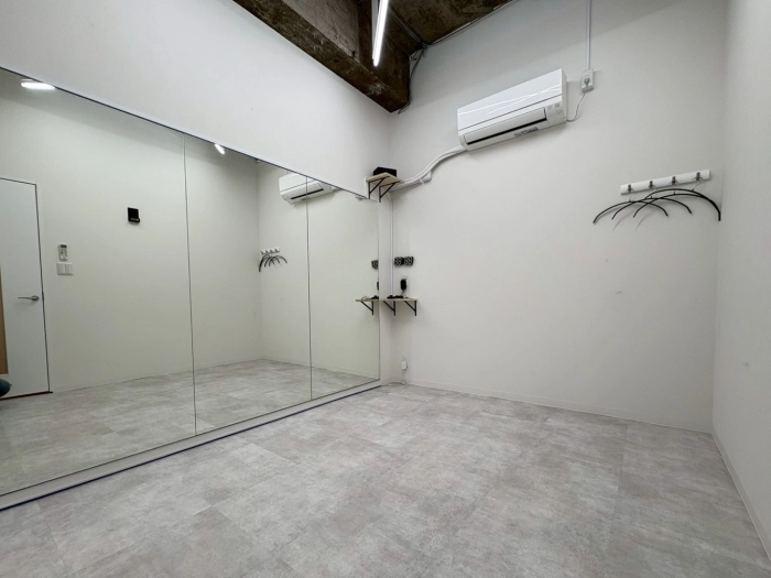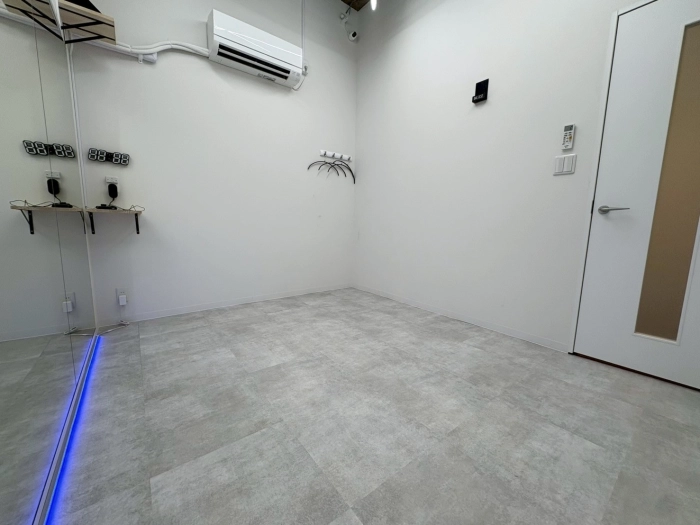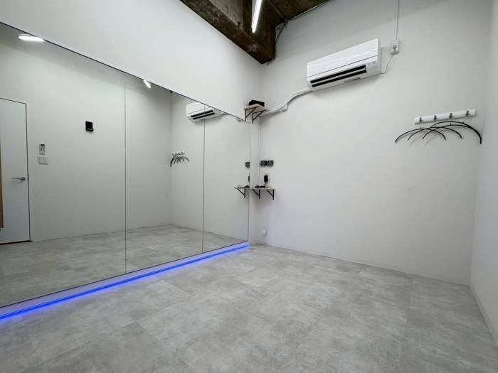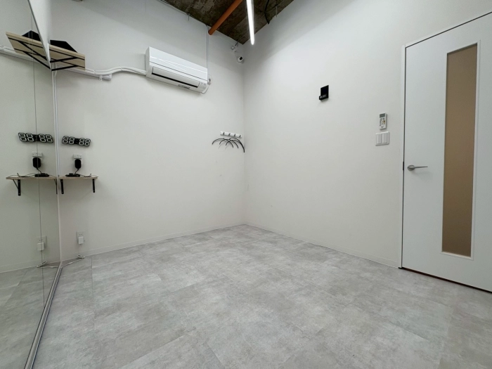 スタジオの入口前で靴を脱いでいただき、電気を点けてお使いください。受付での手続きなどは一切ございません。