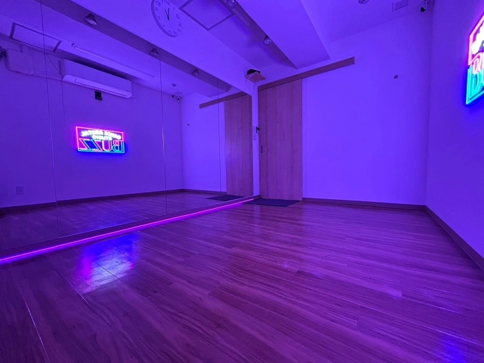 スタジオの入口前で靴を脱いでいただき、電気を点けてお使いください。受付での手続きなどは一切ございません。