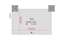 広さ 17.5㎡ 天井高 2.5m 鏡 3.6m