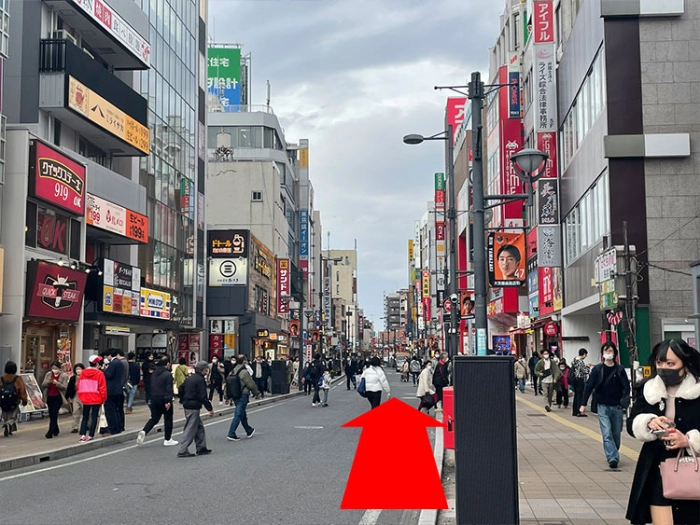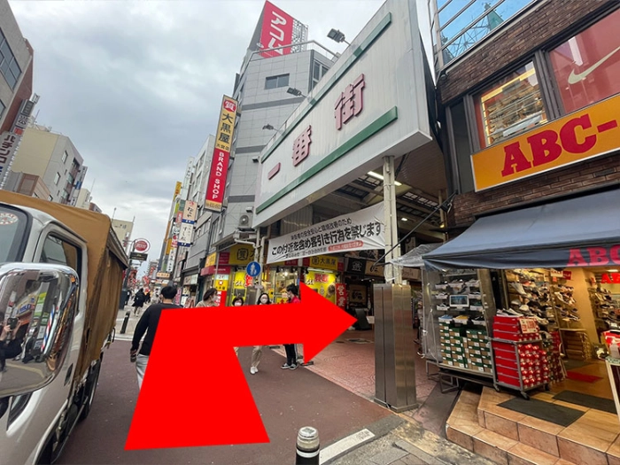 2分程歩いた先を右折。一番街に入りまっすぐ進む。