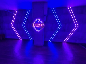 LEDネオンライトが壁に掛けられているので撮影などにも適しています。
