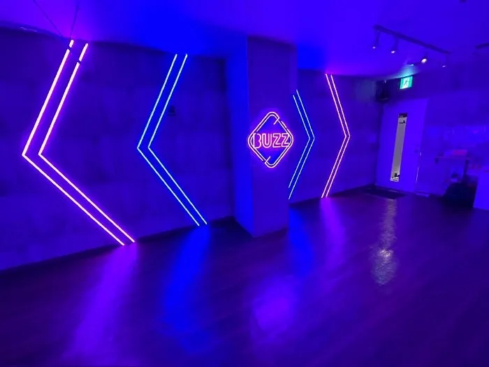 LEDネオンライトが壁に掛けられているので撮影などにも適しています。