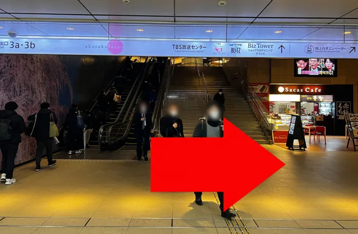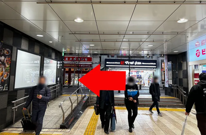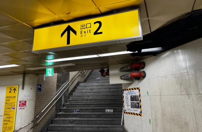 小さな階段を上がったら、「出口2」を目指して右折してください。