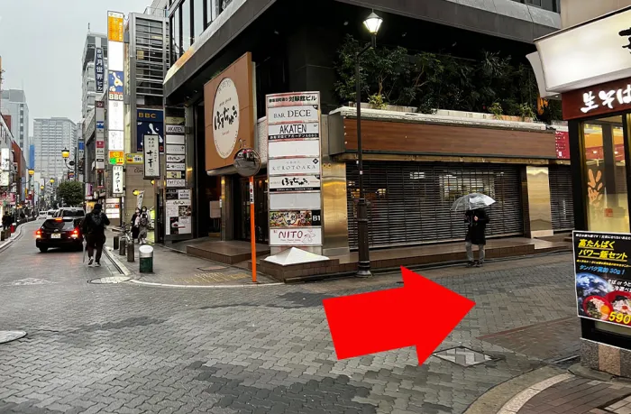 「いきなりステーキ」の角を右折します。