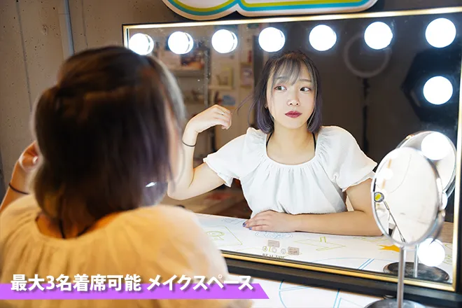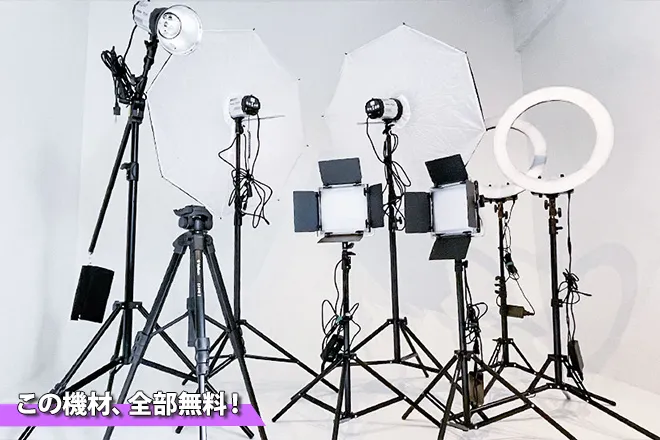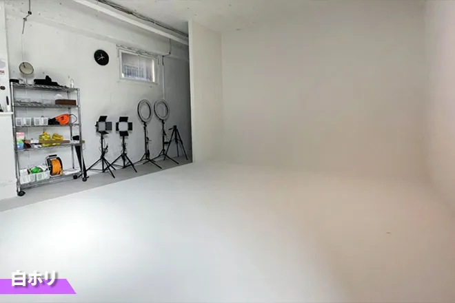 メイクスペース、更衣スペース、白ホリ、クロマキー、背景紙、Wi-Fi、ストロボ、LEDライト、深夜格安、駅チカ