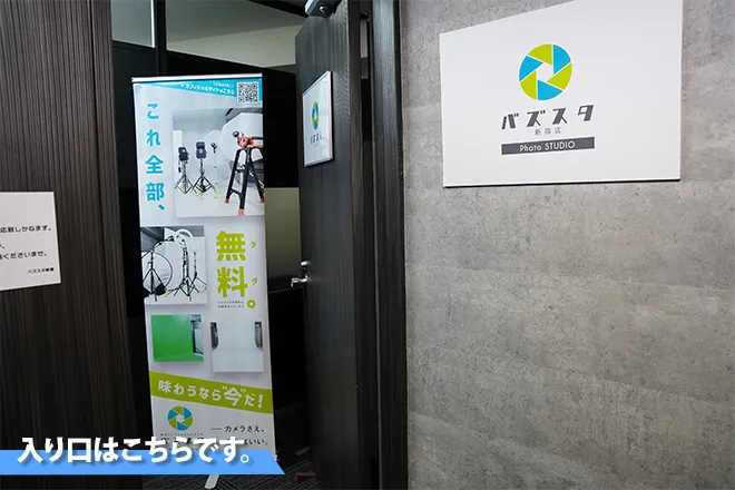 スタジオの入口前で靴を脱いでいただき、電気を点けてお使いください。受付での手続きなどは一切ございません。