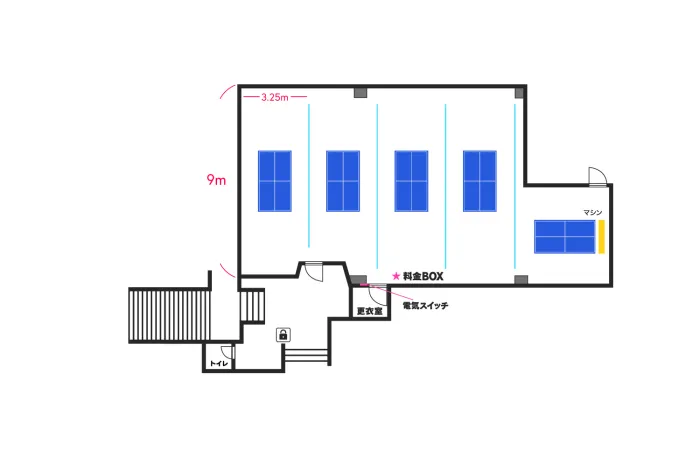 スタジオの入口前で靴を脱いでいただき、電気を点けてお使いください。受付での手続きなどは一切ございません。