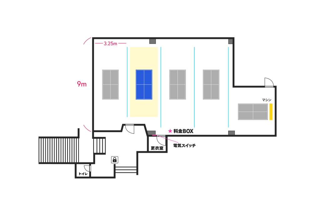 スタジオの入口前で靴を脱いでいただき、電気を点けてお使いください。受付での手続きなどは一切ございません。