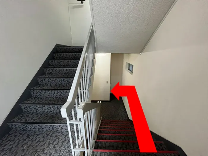 左に曲がりその先の階段を降りる。