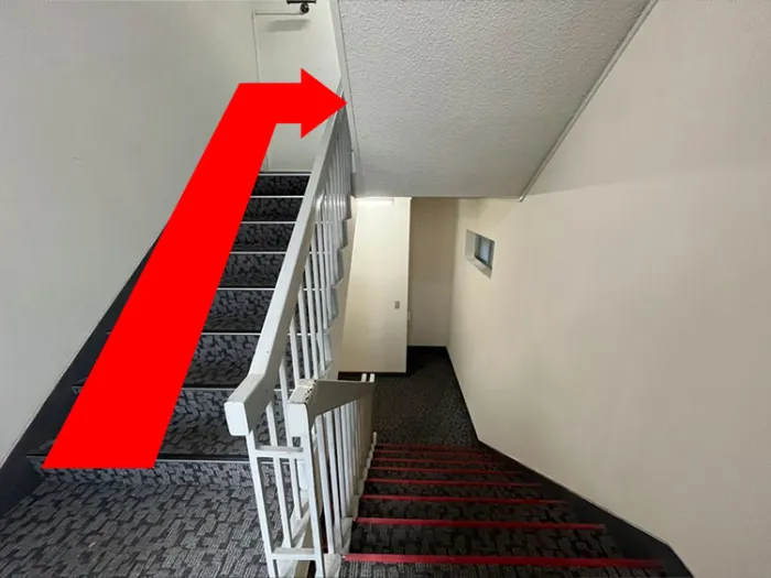 女子トイレ:2階へ上がる階段の踊り場