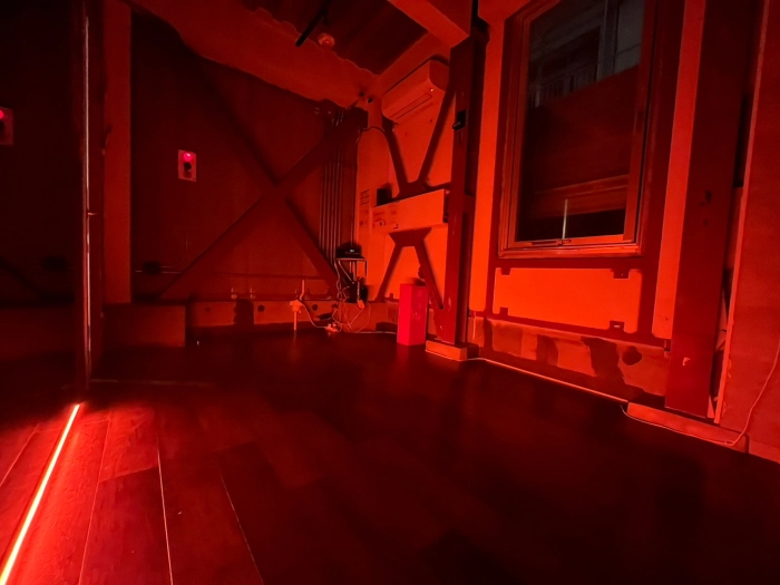 スタジオの入口前で靴を脱いでいただき、電気を点けてお使いください。受付での手続きなどは一切ございません。