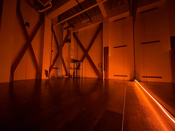 スタジオの入口前で靴を脱いでいただき、電気を点けてお使いください。受付での手続きなどは一切ございません。