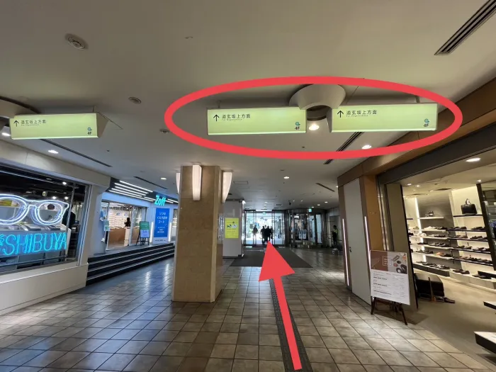 【JR渋谷駅】ご利用の方はマークシティ内に入り、4階へ上がる。そのまま道玄坂上方面へ進む。